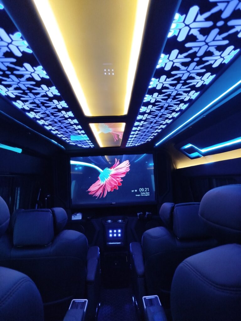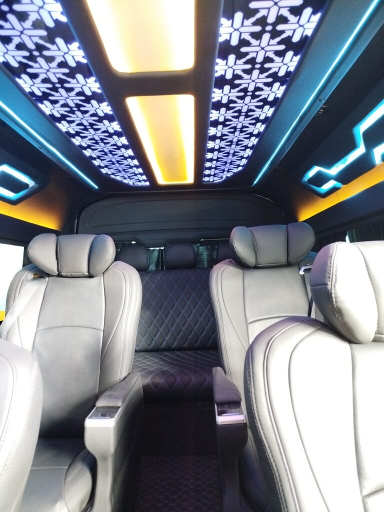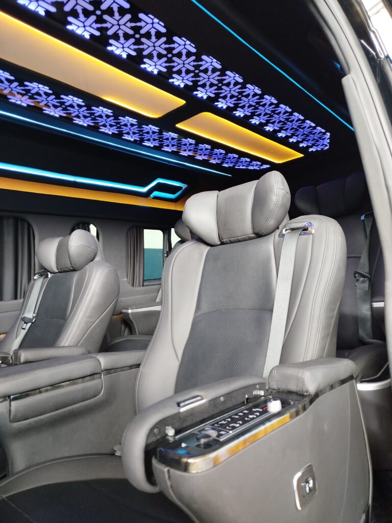 HiAce Premio Luxury VIP 8 Seats salah satu unit di Naruto Trans, mobil dengan warna hitam, eksterior dan interior mewah cocok untuk di jadikan sebagai mobil pengantin di acara pernikahan. VIP 8 Seats juga di lengkapi dengan TV Android 34″ (youtube, netflix), 4 Captain seats, 4 Pilot seats alphard, Full AC, Full Wifi, Karaoke, Beautiful Night Light, Mini Cooler, Aromatheraphy Diffuser, USB Charger, Penutup Jendela.